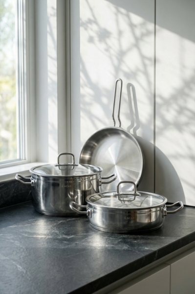 Batterie de cuisine en acier inoxydable – 5 pièces