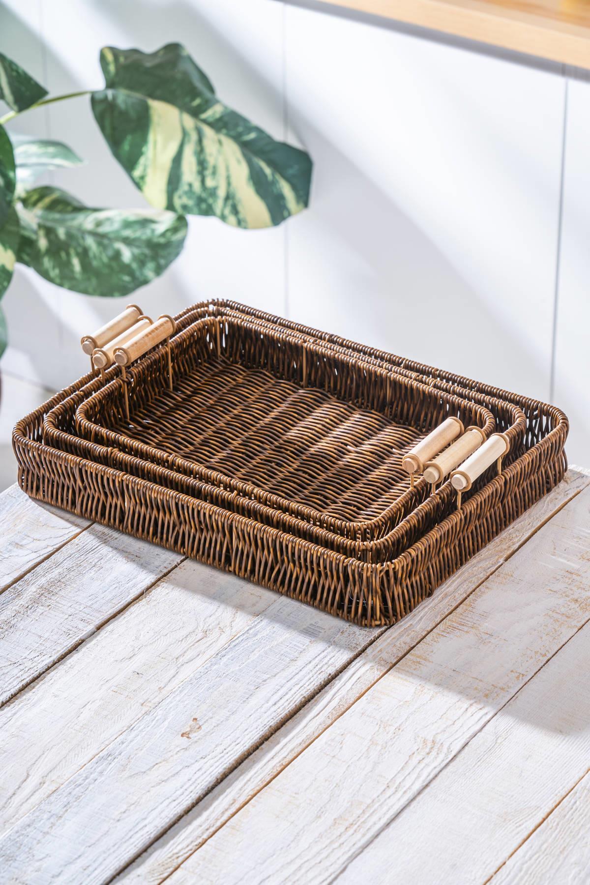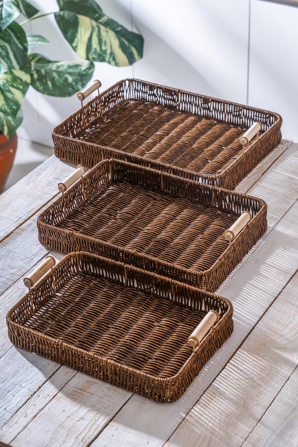 Lot de trois plateaux en osier