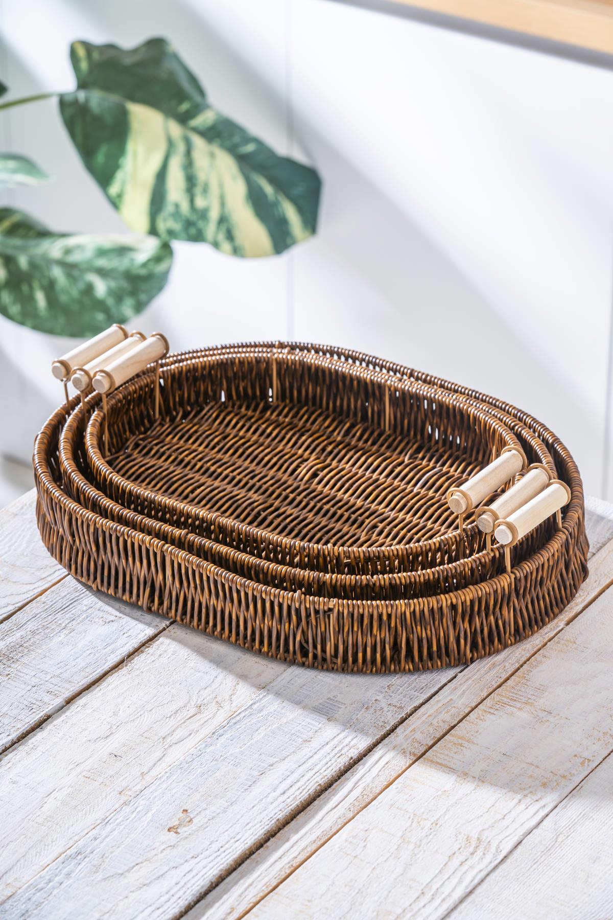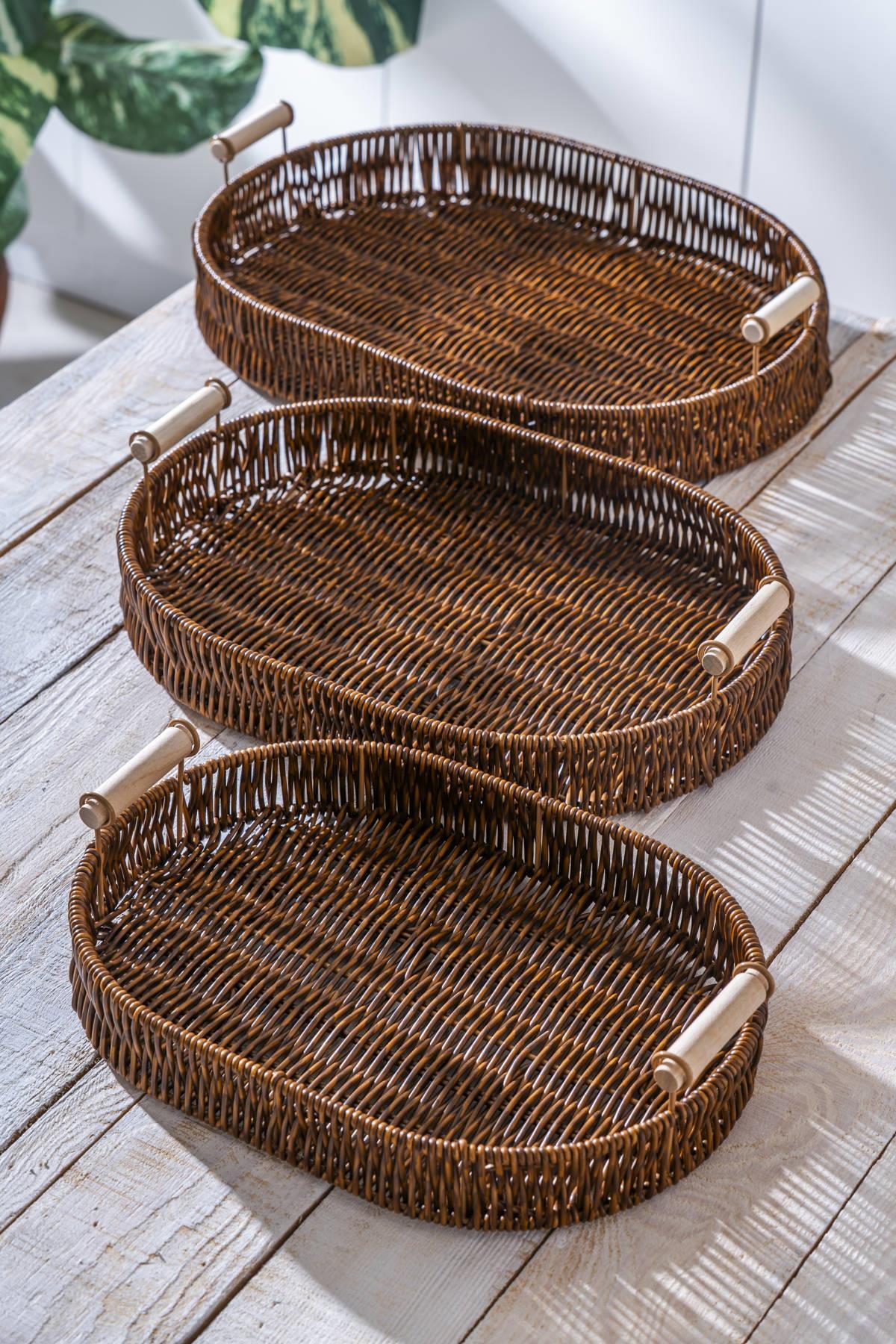 Lot de trois plateaux en osier