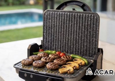 Plaques en fonte granitée : Grâce à leur surface antiadhésive et résistante, elles permettent une cuisson saine. Amovibles, elles sont également très faciles à nettoyer.